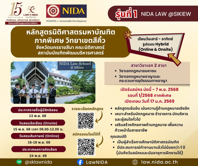 คณะนิติศาสตร์ขอเชิญผู้สนใจเข้าร่วมพิธีลงนามบันทึกข้อตกลงความร่วมมือทางวิชาการ ระหว่างสถาบันบัณฑิตพัฒนบริหาร กับสภาทนายความ ในพระบรมราชูปถัมภ์