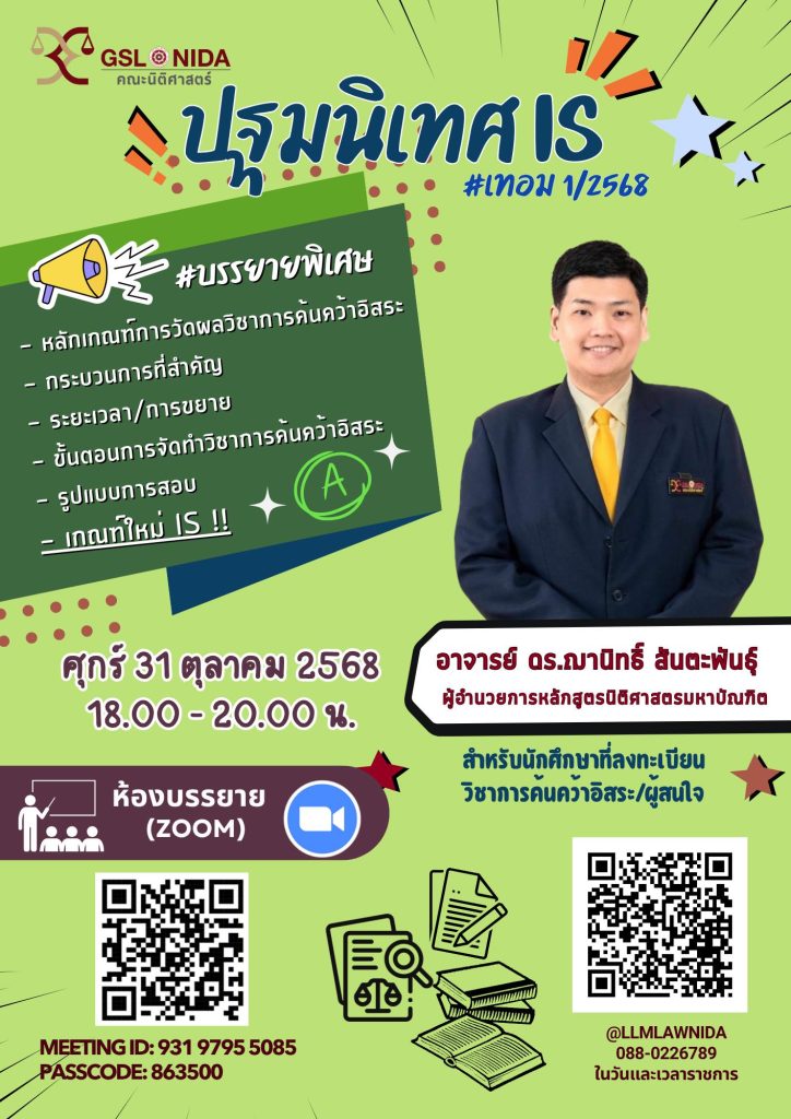 เตรียมพร้อมสู่การค้นคว้าอิสระ ด้วยความมุ่งมั่นและจิตวิญญาณนักกฎหมายกับบรรยายพิเศษ ปฐมนิเทศ IS เทอม 1/2568